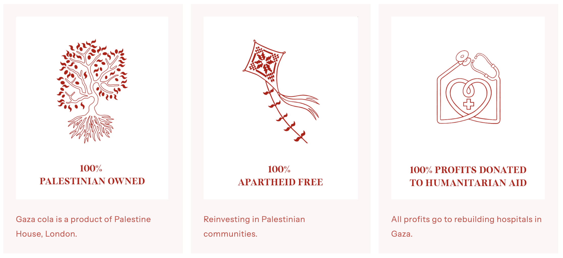 Now available in Aotearoa Gaza Cola: 24 Pack $75.00 Gaza Cola: 6 pack $30.00 Gaza Cola Sugar Free: 6 Pack $30.00 Gaza Cola Sugar Free: 24 Pack $75.00 MISSION STATEMENT Thank you to Raafaye for his beautiful illustrations displayed on this site. Updates from our Medical and Water Projects